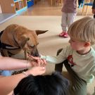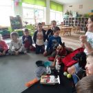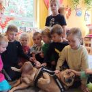 W październiku, obchodzimy Światowy Dzień Dobroci dla Zwierząt. Właśnie z tej okazji oraz realizując temat planu rocznego "ZWIERZAKI - PRZYTULAKI", nasze przedszkole odwiedziły dwa czworonogi. Saba i Bella to kundelki adoptowane ze schroniska. Są bardzo grzeczne i uwielbiają dzieci. Właścicielka piesków, Pani Klaudia, opowiedziała nam o właściwej opiece nad czworonogami. Przypomniała nam także, zasady bezpieczeństwa w kontakcie z psami oraz pokazała nam mnóstwo rzeczy, których potrzebują pieski: smycz, miskę, kaganiec, szczotki do czesania sierści, psie zabawki oraz worki na kupy! Pamiętajcie, że po pieskach trzeba sprzątać! A czy wiedzieliście, że psy mają nawet swoją pastę i szczoteczkę do zębów? :) Na koniec, każdy mógł pogłaskać Sabę i Bellę i poczęstować je smaczkiem. Czworonogi to prawdziwi przyjaciele dzieci i dorosłych.