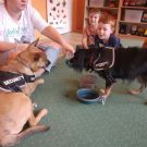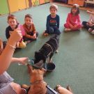 Z okazji realizacji tematu rocznego oraz Światowego Dnia Dobroci dla Zwierząt, nasze przedszkole, odwiedziły dwa czworonogi. Saba i Bella to bardzo grzeczne psiaki, które kochają dzieci. Nasza Pani Klaudia, właścicielka Sabci oraz Belci, tłumaczyła nam w jaki sposób należy opiekować się czworonogiem. Pokazała nam również czego potrzebuje każdy psiak. Saba i Bella mają mnóstwo zabawek, kurtki przeciwdeszczowe oraz nawet swoją pastę do zębów i pasy bezpieczeństwa do jazdy samochodem:) Posiadanie psa to wielka radość, ale także wielka odpowiedzialność.