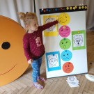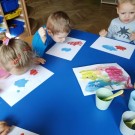 Wyruszyliśmy do krainy uczuć i emocji. Temat ten będzie nam towarzyszył przez cały rok. Pierwszego dnia poznaliśmy emocje, które czujemy najczęściej. Nauczyliśmy je rozpoznawać i nazywać. Mogliśmy też obserwować w lustrze jak wygląda nasza twarz, kiedy jesteśmy szczęśliwi, smutni, zdziwieni lub gdy się boimy. Udało nam się również przelać uczucia na papier dmuchając w kolorowe farby.