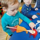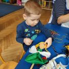 Nasze przedszkolaki uwielbiają zabawy parateatralne. Nasza wyobraźnia nie zna granic i często wcielamy się w różne role. Tym razem na zajęciach zwiedziliśmy wirtualnie teatr lalek. Poznaliśmy różne rodzaje lalek teatralnych, dowiedzielismy jak się nazywają oraz jak się ich używa. Najlepsza zabawą były pacynki oraz odegranie "Czerwonego Kapturka" z pomocą kukiełek. Na końcu wykonaliśmy własne:) Każdy przedszkolak w czasie indywidulanej pracy z nauczycielem mógł stworzyć własną kukiełkę: wybrać kolor włosów i oczu, zaprojektować strój. Nasze lalki teatralne prezentują się wspaniale:)