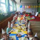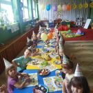 Dzisiaj, świętowaliśmy piąte urodziny naszego Adrianka. Dzieci złożyły koledze życzenia urodzinowe oraz zaśpiewały głośne "100 lat". Adrian wraz z rodzicami, przygotował dla wszystkich koleżanek o kolegów, przepyszne smakołyki. Były zabawy z chustą oraz balonami:)