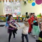 Przedszkolaki brały udział w wielu zabawach muzycznych i tanecznych. Był ,,Pokaz strojów", tańce w parach i solo z balonami i serpentynami. Wspólna zabawa przy piosenkach była przeplatana konkursami oraz słodkim poczęstunkiem od Czerwonego Kapturka. Wszyscy dzielnie pozowali do zdjęć. To był dzień pełen wrażeń!