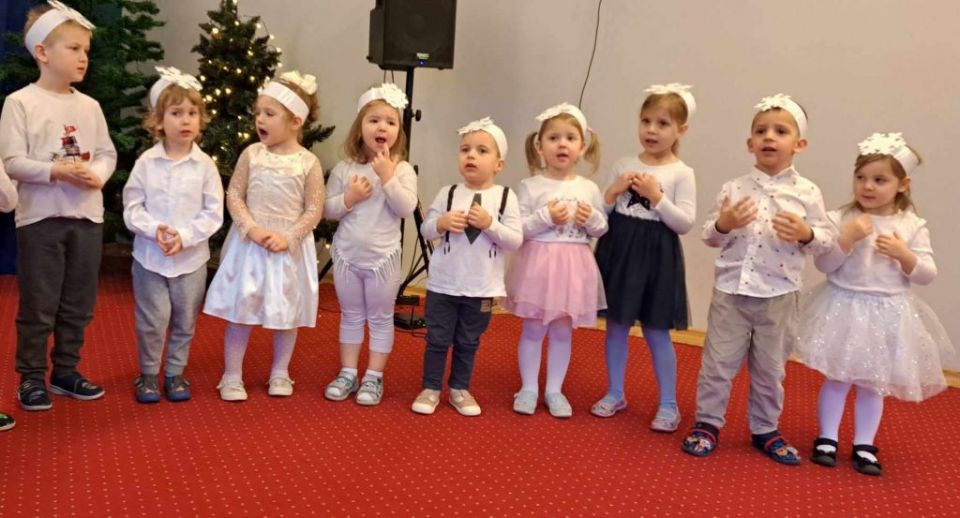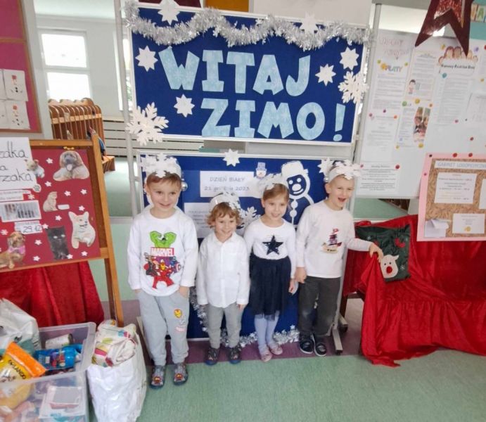 21 grudnia w czwartek grupa IX przywitała Panią Zimę. W tym wyjątkowym dniu dzieci przyszły ubrane na biało oraz dostały przepiękne opaski śnieżynek na głowę. Na Sali Rytmicznej grupa IX wraz z grupą II powitała Zimę piosenką o świątecznych pierniczkach. Na zajęciach nie zabrakło piosenek i zabaw ruchowych o tematyce zimowej oraz zabaw sensorycznych ze sztucznym śniegiem zrobionym ze skrobii ziemniaczanej i pianki.