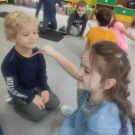 Dzisiaj obchodziliśmy w przedszkolu święto naszych Chłopców. Na początku, żeby chłopcy pięknie wyglądali podczas tego dnia, wzięliśmy udział w zabawie „Golimy brody”, podczas której to dziewczynki „goliły brody” naszym małym mężczyznom. Następnie dziewczynki zamieniły się w jurorki, a nasi chłopcy brali udział w wielu konkurencjach, które sprawdzały ich umiejętności: „Mistrz najszybszego liczenia”, „Mistrz Samochodowej Kierownicy” czy „Mistrz powagi”. Był również test na prawdziwego dżentelmena. Nasze przedszkolaki, podzielone na dwie grupy, uczestniczyły w zabawie drużynowej „Bieg z piłeczką na łyżce”. Nie zabrakło także zabawy, w której chłopcy musieli odszukać swoją królewną, a następnie dziewczynki swojego rycerza