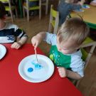 W ramach realizacji projektu edukacyjnego "Kreatywny Przedszkolak-Kreatywne Dziecko" poznaliśmy właściwości lodu. Sprawdziliśmy jaki jest w dotyku, dowiedzieliśmy się również z czego powstaje i w jaki sposób. Mogliśmy także poeksperymentować, malując na lodzie! Pochłonęło nas to niesamowicie:) Stworzyliśmy piękne dzieła oraz doświadczyliśmy czegoś zupełnie nowego:)
