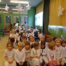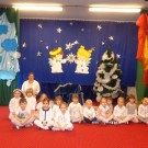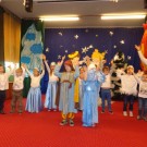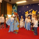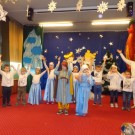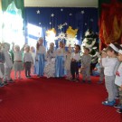 W dniu 21.12.2018 r. powitaliśmy nową porę roku - zimę. W sali teatralnej odbyło się spotkanie wszystkich przedszkolaków, na którym dzieci wspólnie bawiły się , utrwaliły wiadomości o zimie. Także w związku z nadchodzacymi Świętami Bożegonarodzenia razem kolędowaliśmy przy choince. Każda grupa prezentowała kolędę lub pastorałkę. Starszaki z grupy VI uświetniły wspólne kolędowanie elementami ze swojego przedstawienia jasełkowego.