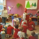 Tego dnia przedszkolaki były bardzo szczęśliwe, rozpromienione, a kiedy znalazły się blisko św. Mikołaja – nawet troszkę zawstydzone. Oprócz pełnego prezentów worka św. Mikołaj przywiózł ze sobą dużo uśmiechu