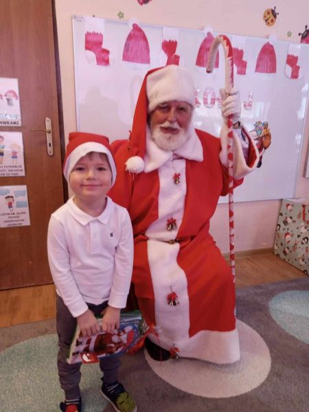 06.12.2023 w naszym przedszkolu gościliśmy św. Mikołaja- starszego pana z białą brodą ubranego w czerowny strój , ktory według legend i baśni rozwozi dzieciom prezenty w okresie świąt bożego Narodzenia. Odwiedziny sw. Mikołaja były dla maluszków olbrzymim przeżyciem. Przecież każde dziecko czeka na ten moment przez cały rok. Dzieci powitały gościa wierszem pt.,, Dzwonią , dzwoneczki..." oraz piosenką pt.,, Już blisko kolęda".Każdy maluszek z wielkim przejęciem podszedł do Mikołaja aby odebrać prezent i wykonać sobie z nim pamiątkowe zdjęcie.